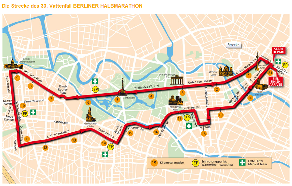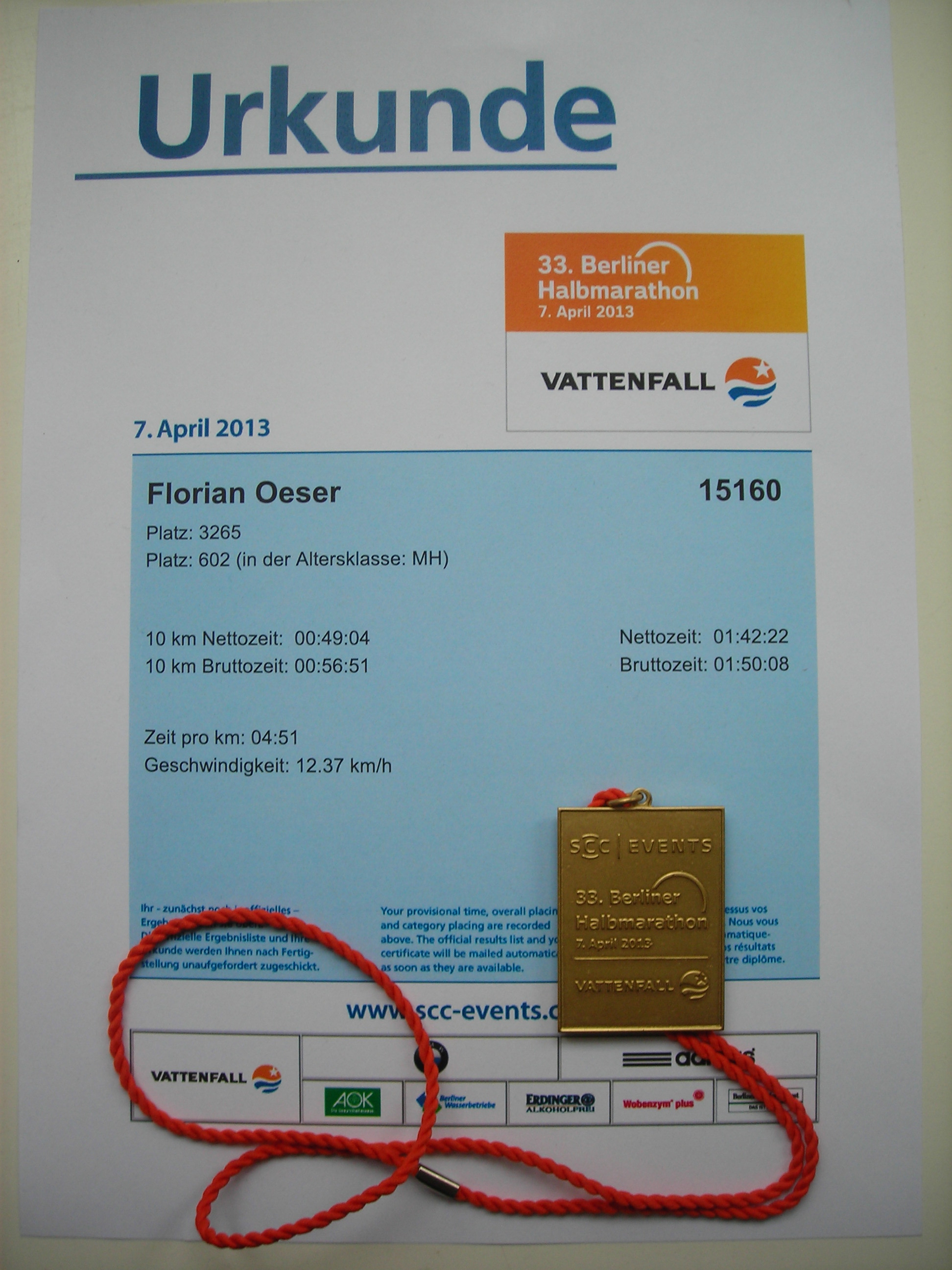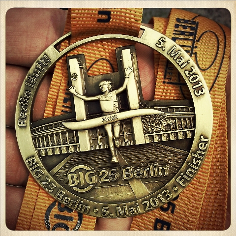 Der Zieleinlauf fand auf der 400m-Bahn im Berliner Olympiastation statt. Diese Kulisse und das Wissen darüber, wofür so eine Bahn gedacht ist, haben mich irgendwie noch zu einem Sprint auf den letzten Metern befähigt. Und ohne diesen wäre es verdammt eng geworden.
